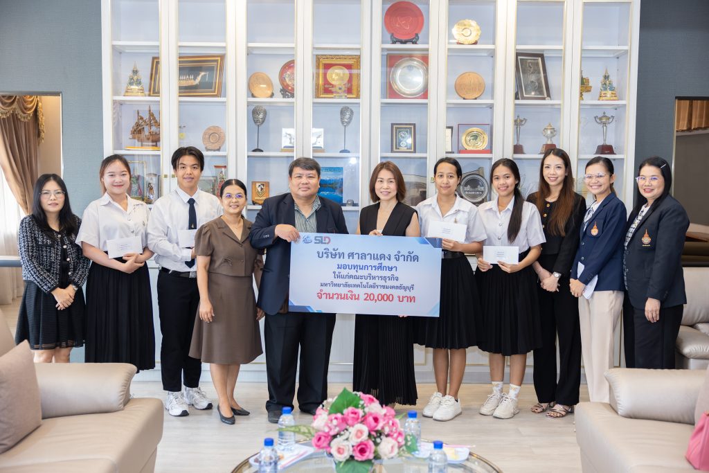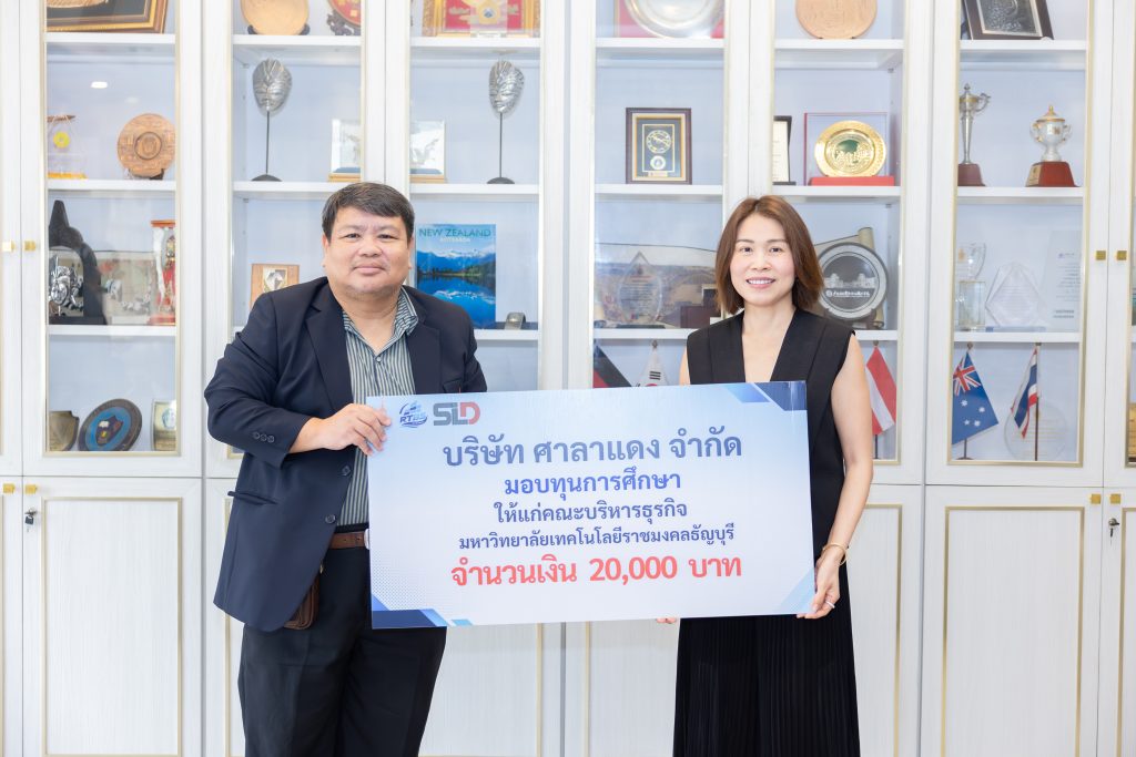 บริษัท ศาลาแดง จำกัด โดย คุณวนิดา ธีระกิจมานันทชัย ได้มอบเงินบริจาคจำนวน 20,000 บาท (สองหมื่นบาทถ้วน) ให้แก่ คณะบริหารธุรกิจ มหาวิทยาลัยเทคโนโลยีราชมงคลธัญบุรี โดยมีวัตถุประสงค์เพื่อสนับสนุนการดำเนินงานด้านการศึกษา การพัฒนานักศึกษา และกิจกรรมเพื่อส่วนรวมของคณะ ทั้งนี้เงินบริจาคดังกล่าวสามารถนำไปใช้เป็นทุนการศึกษาแก่นักศึกษาที่ขาดแคลนทุนทรัพย์ นักศึกษาที่มีผลการเรียนดี หรือผู้ที่มีความประพฤติเรียบร้อยและทำกิจกรรมเพื่อส่วนรวมได้อย่างเหมาะสม นอกจากนี้ยังสามารถสนับสนุนการจัดกิจกรรมพัฒนาศักยภาพของนักศึกษาและค่าใช้จ่ายต่าง ๆ ของคณะได้ด้วย การมอบทุนในครั้งนี้ถือเป็นส่วนหนึ่งของการสร้างโอกาสทางการศึกษา และสะท้อนถึงความร่วมมือระหว่างภาคธุรกิจกับสถาบันการศึกษาเพื่อการพัฒนาที่ยั่งยืนในระยะยาว (SDG4: Quality Education)