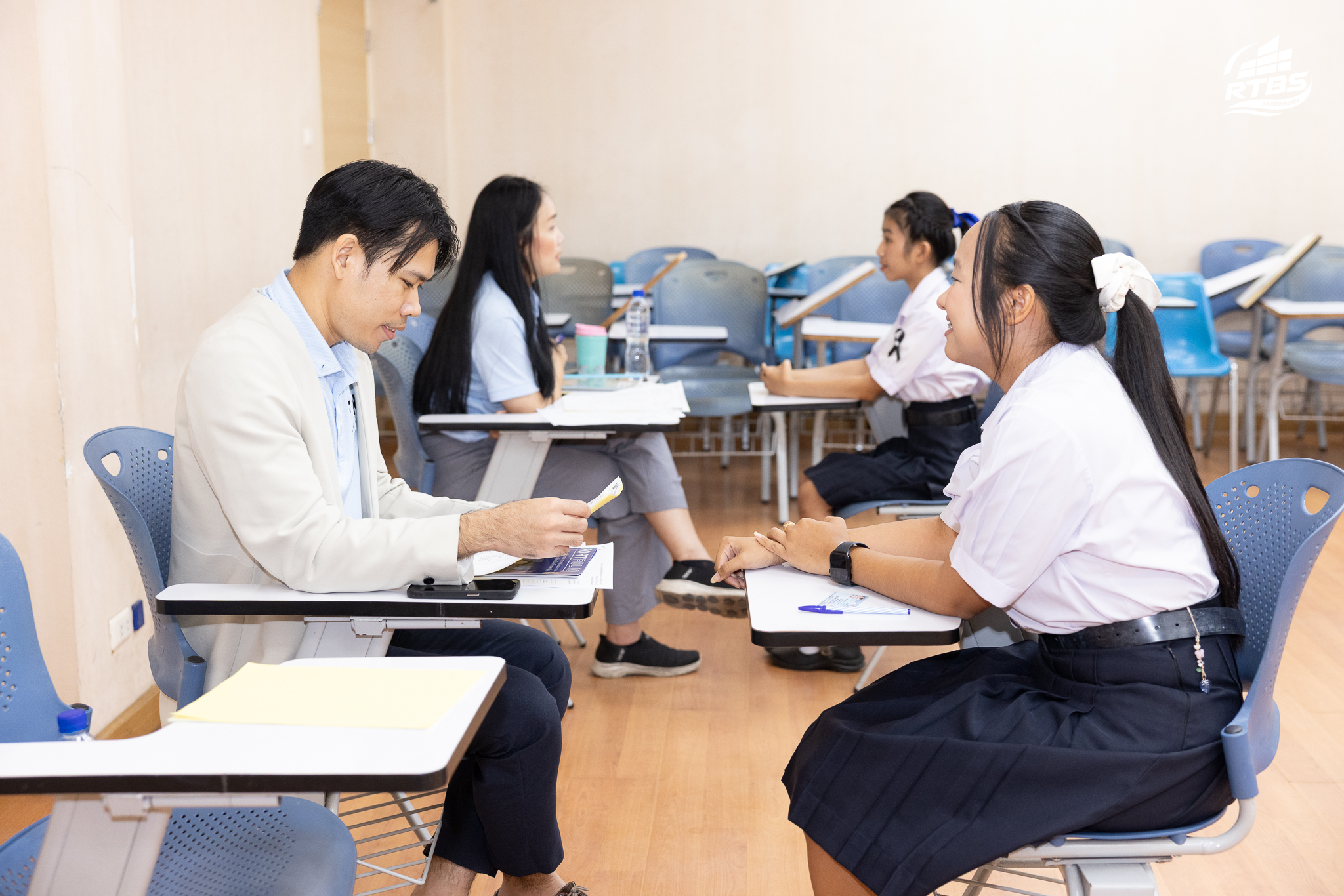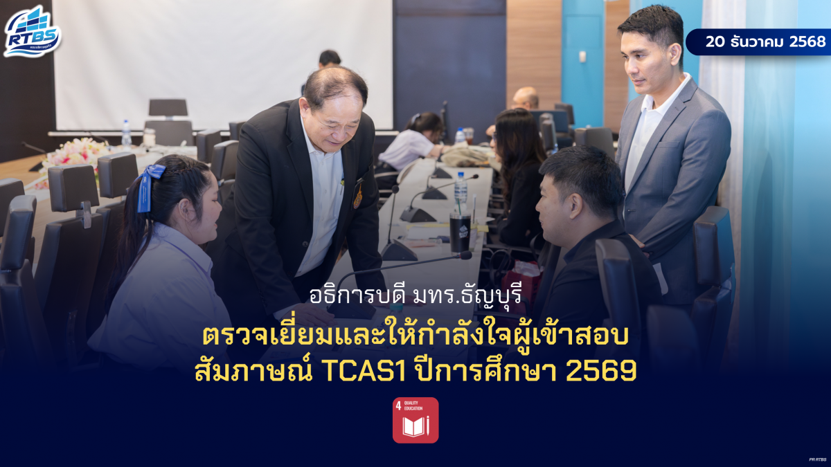 มหาวิทยาลัยเทคโนโลยีราชมงคลธัญบุรี โดย รศ.ดร.สมหมาย ผิวสอาด อธิการบดีมหาวิทยาลัย พร้อมด้วยคณะผู้บริหาร เดินทางมาเยี่ยมชมและให้กำลังใจผู้เข้าสอบสัมภาษณ์ รอบ TCAS1 Portfolio และโควตา ปวช./ปวส. ประจำปีการศึกษา 2569 ซึ่งจัดขึ้น ณ อาคาร 4 คณะบริหารธุรกิจ มทร.ธัญบุรี ตั้งแต่เวลา 09.00 น. ท่ามกลางบรรยากาศที่เต็มไปด้วยความอบอุ่น เป็นกันเอง และสะท้อนถึงความพร้อมของมหาวิทยาลัยในการต้อนรับนักศึกษาใหม่