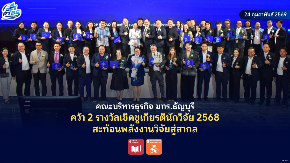20 กุมภาพันธ์ 2026ประกาศผลรางวัลเชิดชูเกียรตินักวิจัย ประจำปี 2568 คณะบริหารธุรกิจ มทร.ธัญบุรี รับ 2 รางวัลสำคัญ