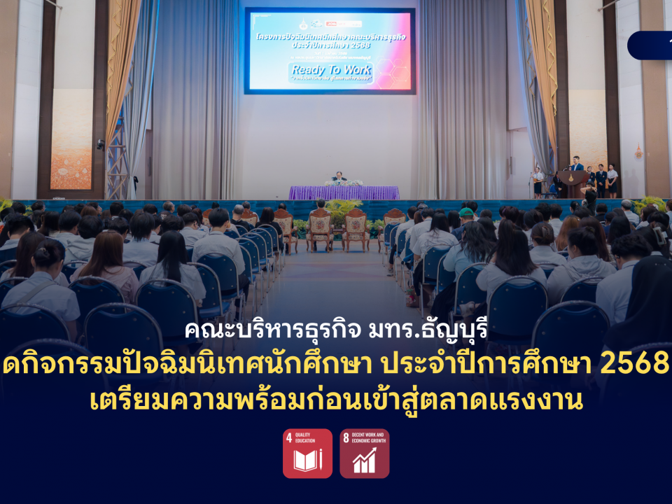 คณะบริหารธุรกิจ มทร.ธัญบุรี จัดกิจกรรมปัจฉิมนิเทศนักศึกษา ประจำปีการศึกษา 2568 แสดงความยินดีว่าที่บัณฑิตพร้อมเตรียมความพร้อมสู่ตลาดแรงงาน