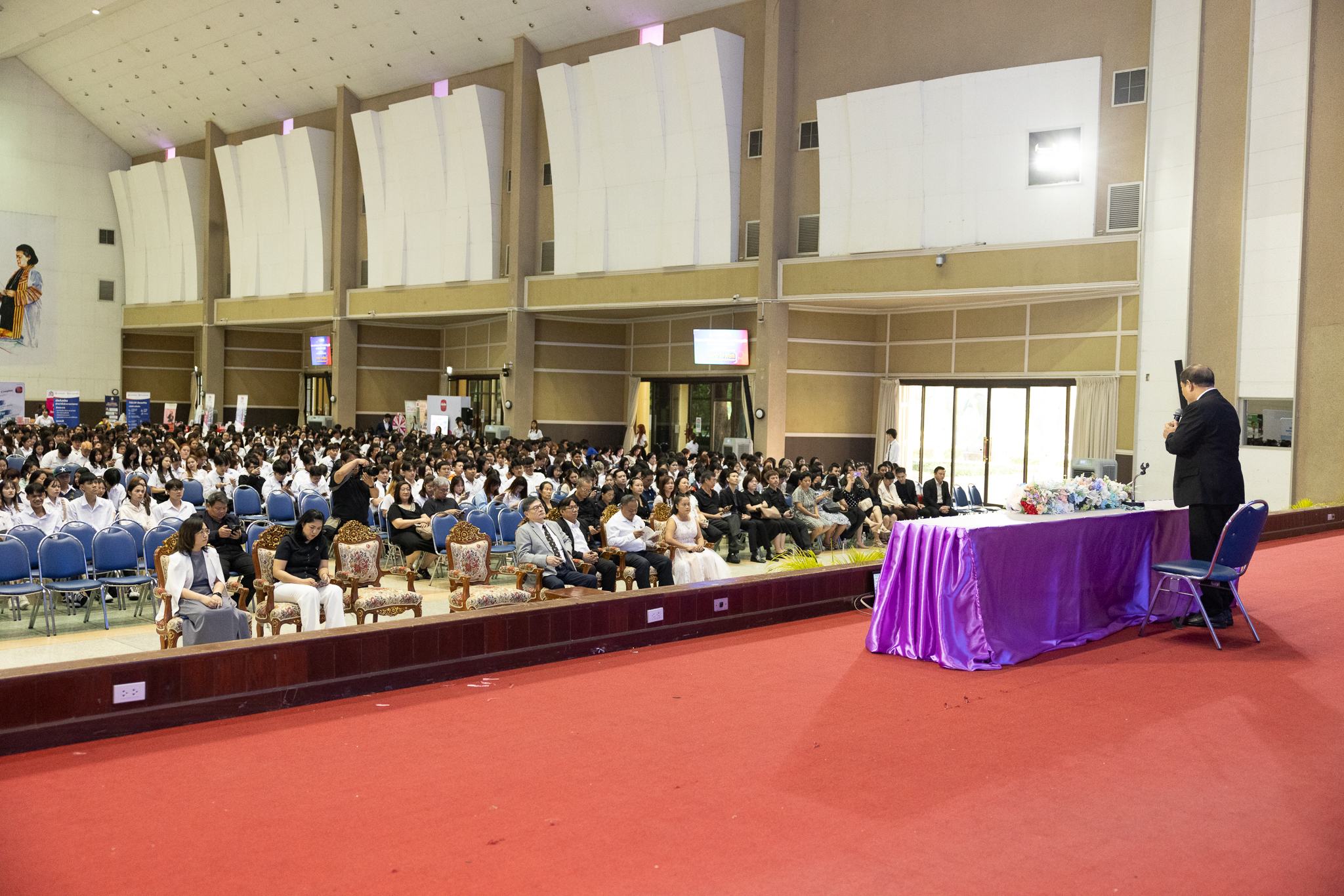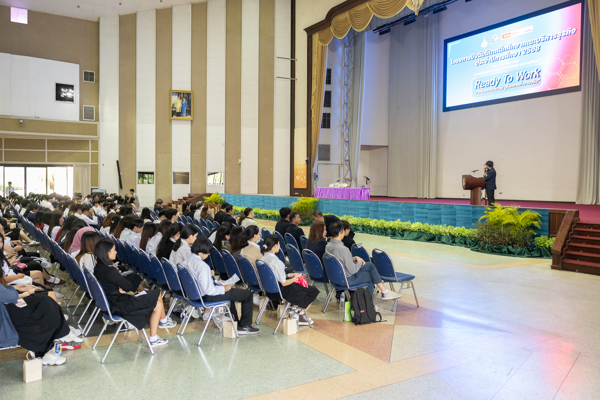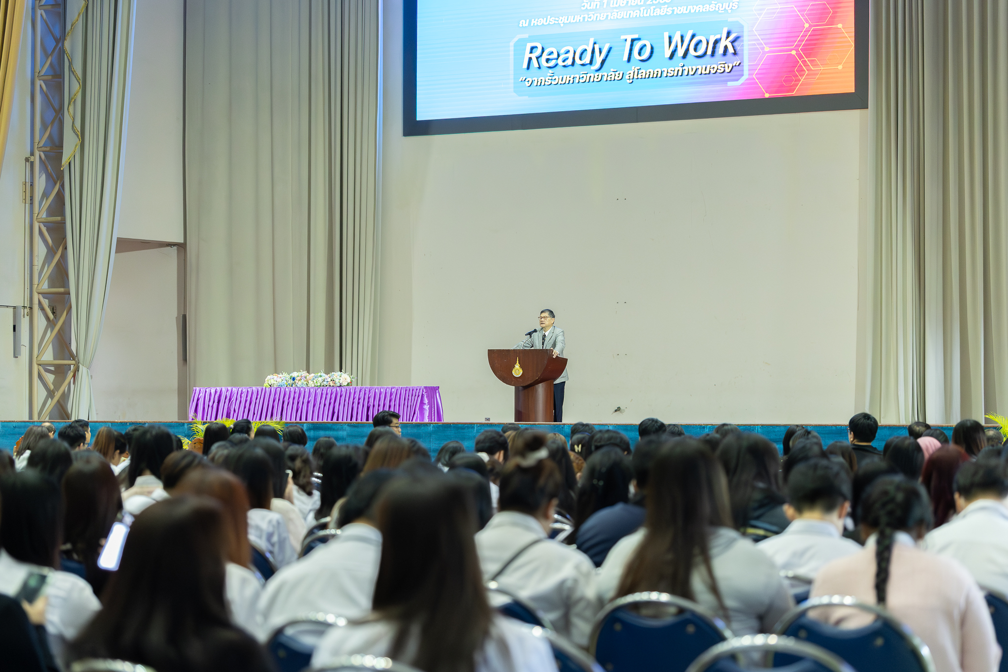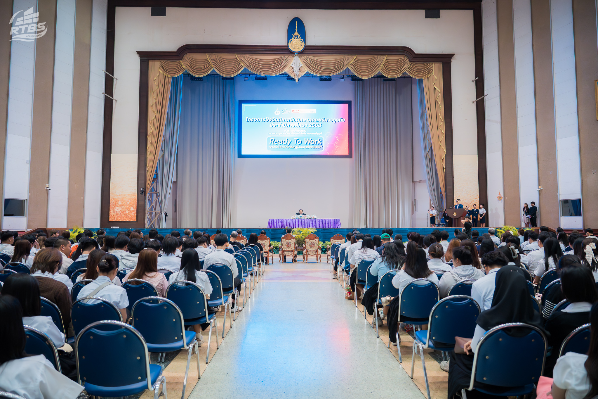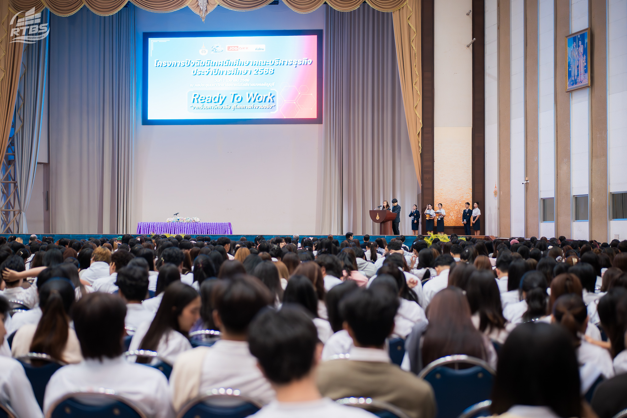 1 เมษายน 2569 – คณะบริหารธุรกิจ มหาวิทยาลัยเทคโนโลยีราชมงคลธัญบุรี (มทร.ธัญบุรี) จัดกิจกรรมปัจฉิมนิเทศนักศึกษา ประจำปีการศึกษา 2568 ณ หอประชุมมหาวิทยาลัยเทคโนโลยีราชมงคลธัญบุรี โดยมี รองศาสตราจารย์ ดร.สมหมาย ผิวสอาด อธิการบดี เป็นประธานกล่าวเปิดงานและให้โอวาทแก่นักศึกษา พร้อมด้วย ศาสตราจารย์ ดร.กล้าหาญ ณ น่าน คณบดีคณะบริหารธุรกิจ กล่าวรายงานวัตถุประสงค์ของโครงการและแสดงความยินดีกับว่าที่บัณฑิตทุกคนที่กำลังจะสำเร็จการศึกษา กิจกรรมครั้งนี้มีเป้าหมายเพื่อเตรียมความพร้อมให้แก่นักศึกษาชั้นปีสุดท้ายก่อนก้าวเข้าสู่ตลาดแรงงาน โดยประกอบด้วยการบรรยายพิเศษจากวิทยากรระดับประเทศ กิจกรรม Workshop สร้างเรซูเม่ และงาน Job Fair ที่รวมสถานประกอบการชั้นนำกว่า 38 บูธ